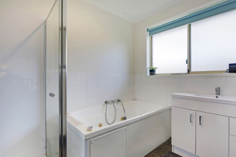 Timber flooring in the dining/kitchen area is low maintenance and the bedrooms and living room are all carpeted. The bathroom with separate shower and large spa bath and toilet is tiled, so all you need to do is move in and enjoy!