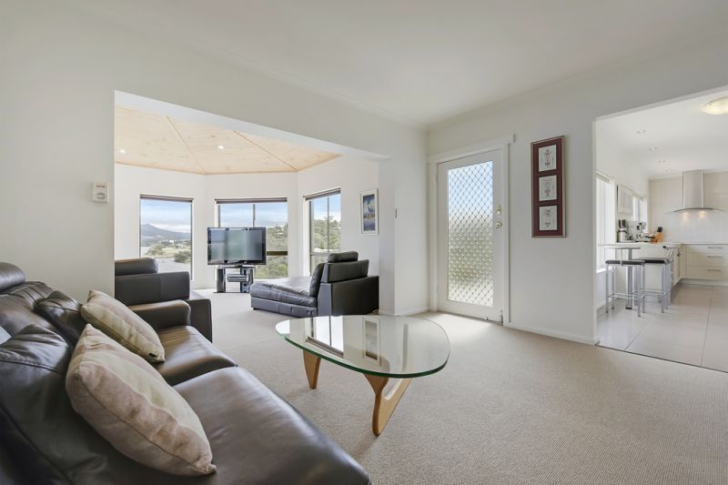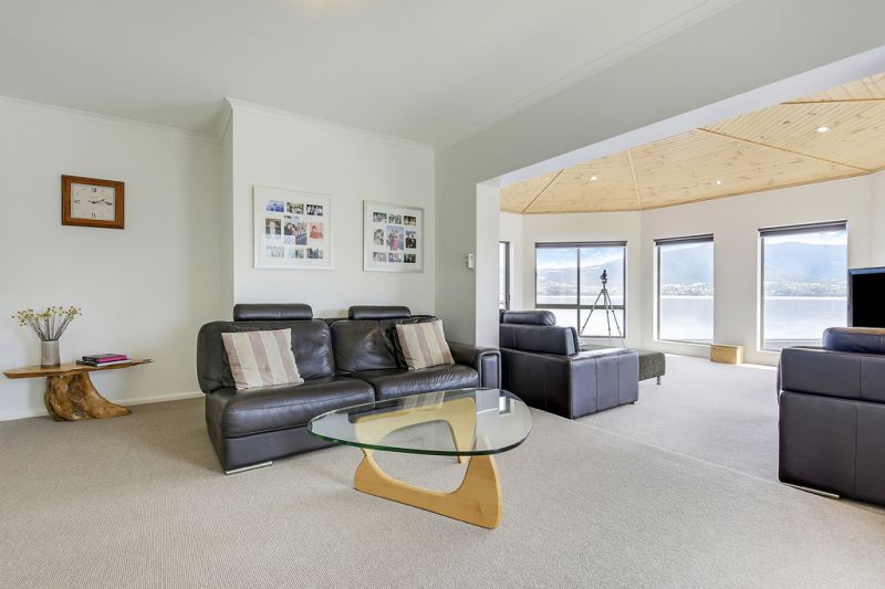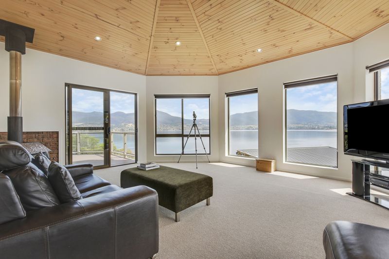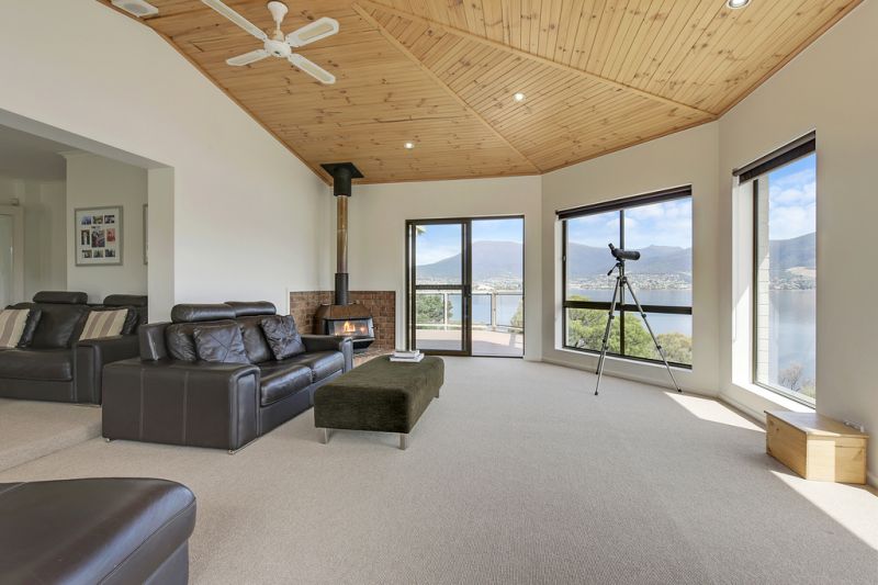Capturing stunning three hundred and sixty degree vistas taking in mesmerizing panoramic views of Mount Wellington, MONA and Mt Direction, this is a true lifestyle property positioned directly across the river from the world famous MONA. The daily movement of the river with the ferries and boating activity can be enjoyed from all living areas and bedrooms in this quality home. Deceptively private, the home is set back from the road, behind an electric gate and accessed via a sandstone retained concrete driveway.