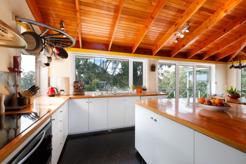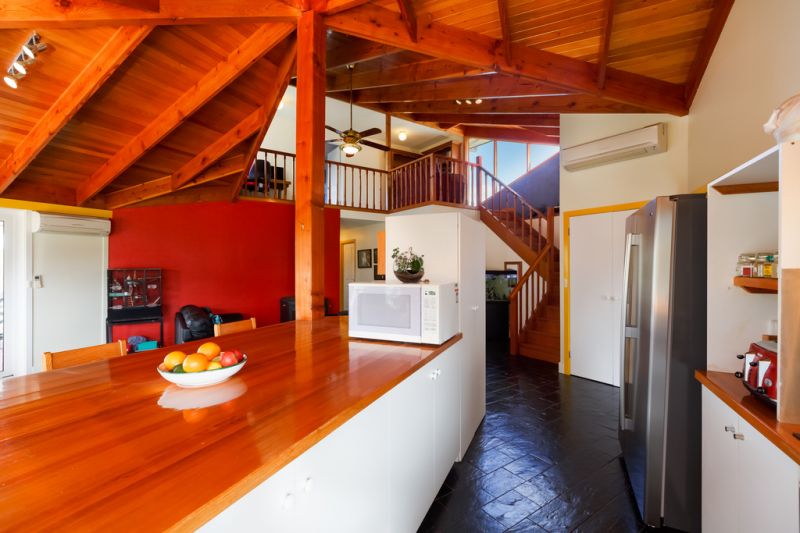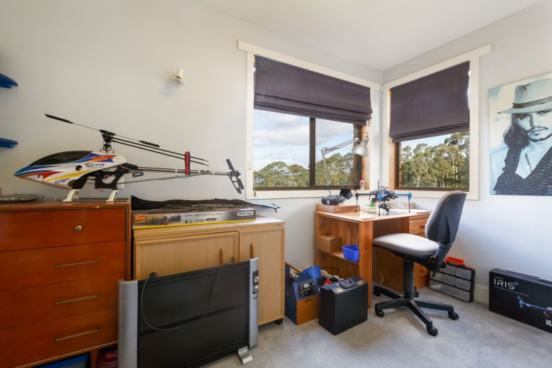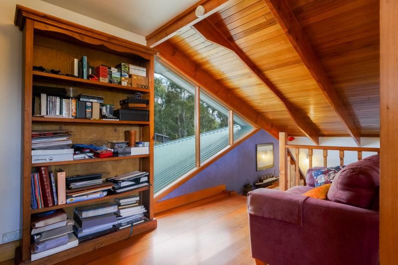 The architect-designed double storey house has a northerly facing aspect, capturing all day sun. The private loft, master bedroom and ensuite on the upper level provide a quiet and peaceful "parental retreat" and have stunning views over Conningham, North West Bay and neighbouring bushland.