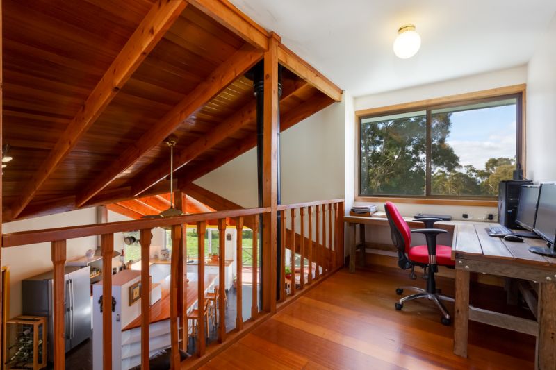 The large sunny kitchen and family area boasts an exposed beam cathedral ceiling, new appliances and easy-care slate tiled floor. With 4 bedrooms and rumpus room, this property has wood heating complemented by twin heat pumps in the family area. The large formal lounge room has an "old world charm" featuring an open fireplace and high ceilings. Beyond the family room is a large wooden deck area that offers a tranquil area for relaxation, overlooking a rural bush setting.