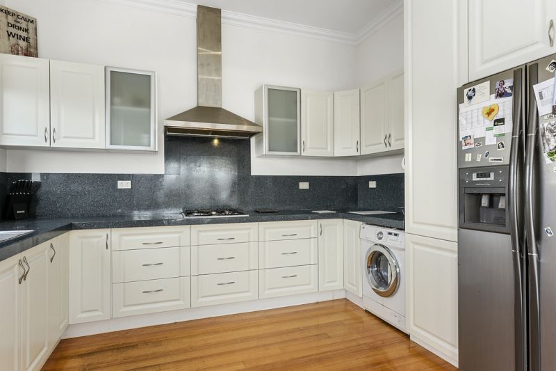 Enjoy cooking gourmet meals in the large kitchen with plenty of storage and bench space with quality appliances including a gas cooktop, plate warmer, electric oven and dishwasher as well as a clever European built in laundry in this area.