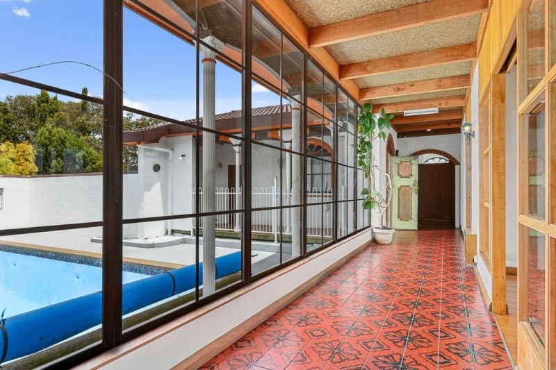 This private oasis is positioned on a flat 7696 sqm parcel of land and enjoys reserve waterfrontage and spectacular water views all the way to Claremont Golf Course and Old Beach. Solidly constructed in double brick and inspired by Spanish Mission Style, this circa 1978 home displays original features that will appeal to lovers of retro architecture. The expansive floorplan, combined with the in-ground swimming pool and tennis court offers a relaxed backdrop for family living.