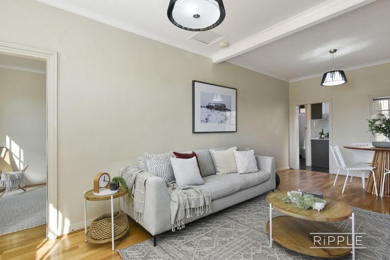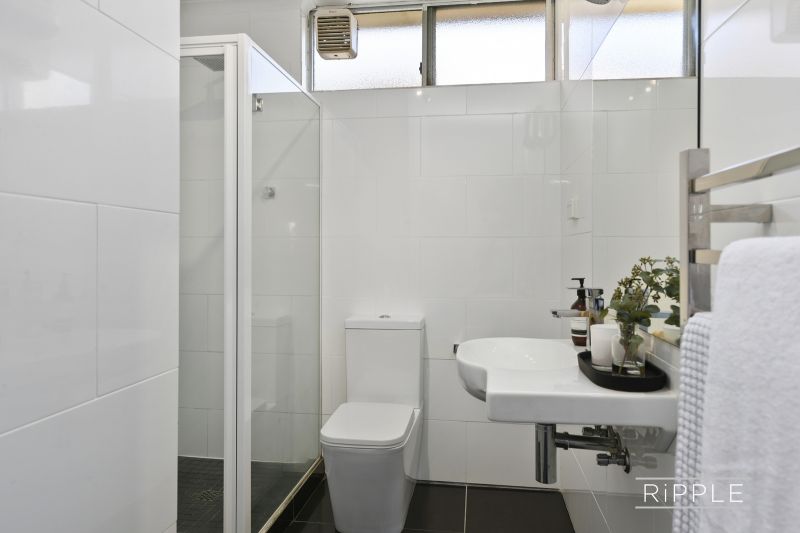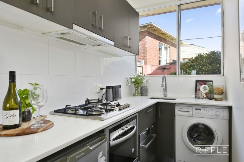 The modern kitchen has been updated with quality joinery, stone bench tops and stainless appliances, including a dishwasher. The kitchen also accommodates a European laundry. The crisp white bathroom makes the most of the available space and features a shower, toilet and an attractive wall-hung vanity.