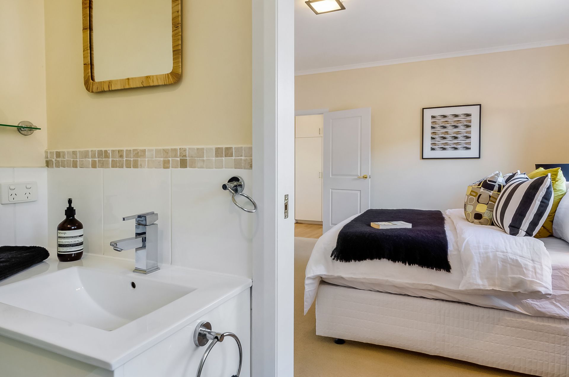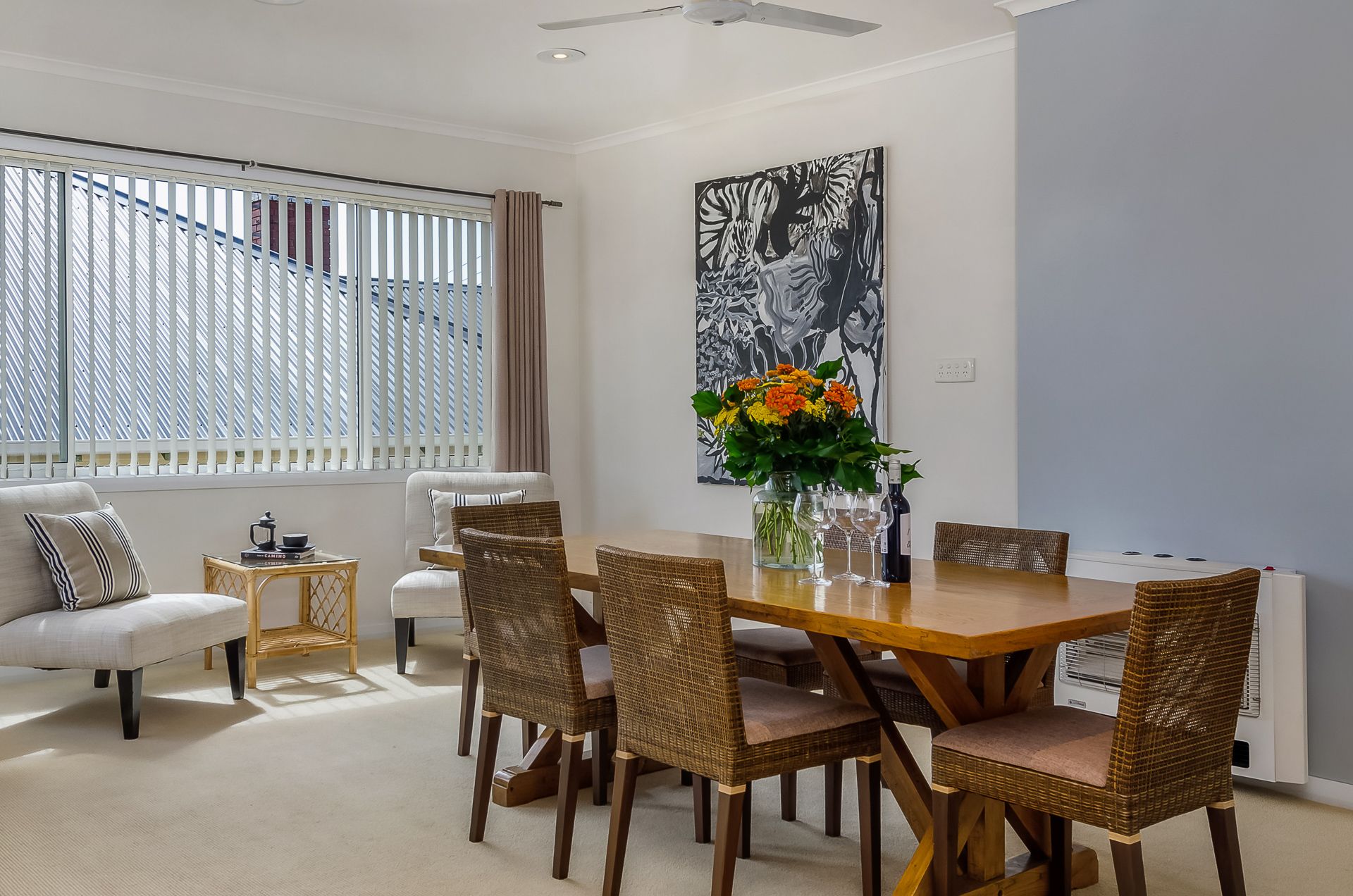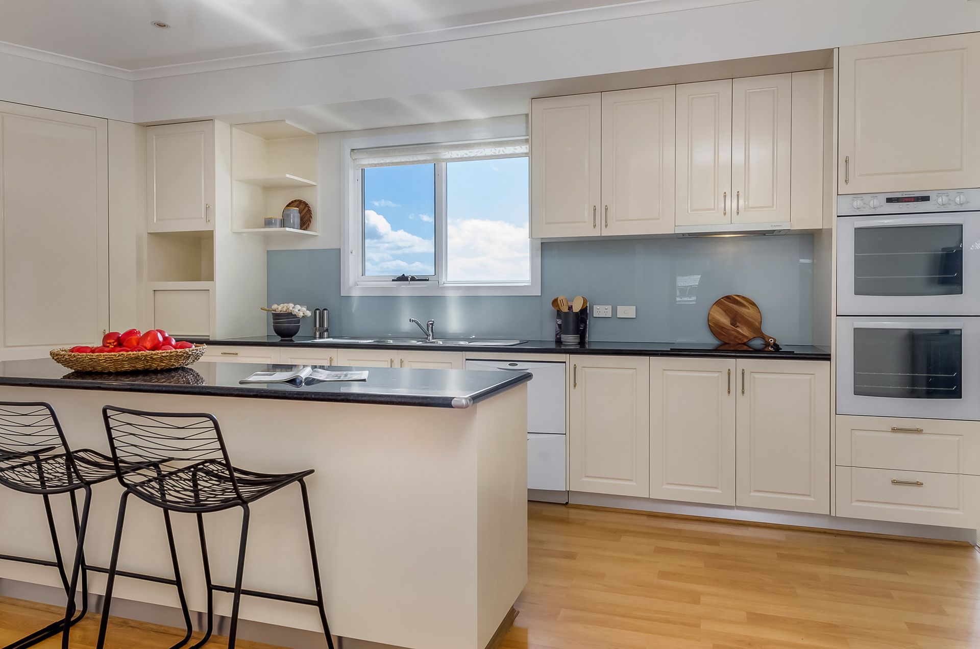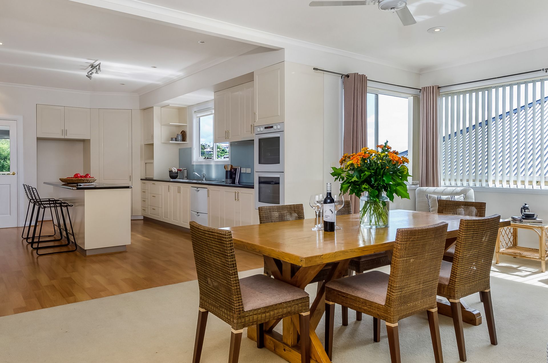 The heart of the home is the generously sized open plan living area, which incorporates a modern and relaxed lounge and dining space; and the well-appointed kitchen is equipped with quality appliances, stone benchtops, great storage, and a large island bench.