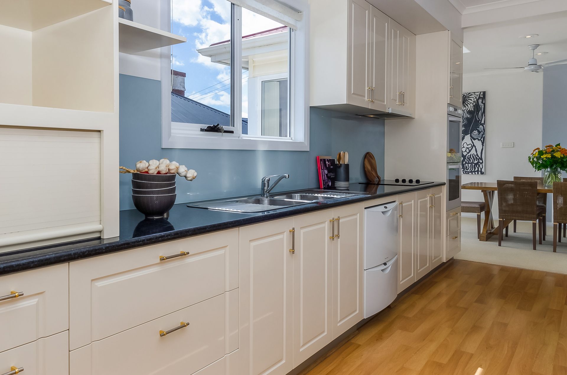 The original 1925-built weatherboard home boasts a magnificent extension, offering an additional living space and modern upgrades, such as replaced plumbing and wiring, ducted gas heating and electric heaters, plus NBN connection. With a wide entrance hall, high ceilings and exquisite Tas Oak floorboards, the home's delightful character has not been lost in the pursuit of contemporary and comfortable living.