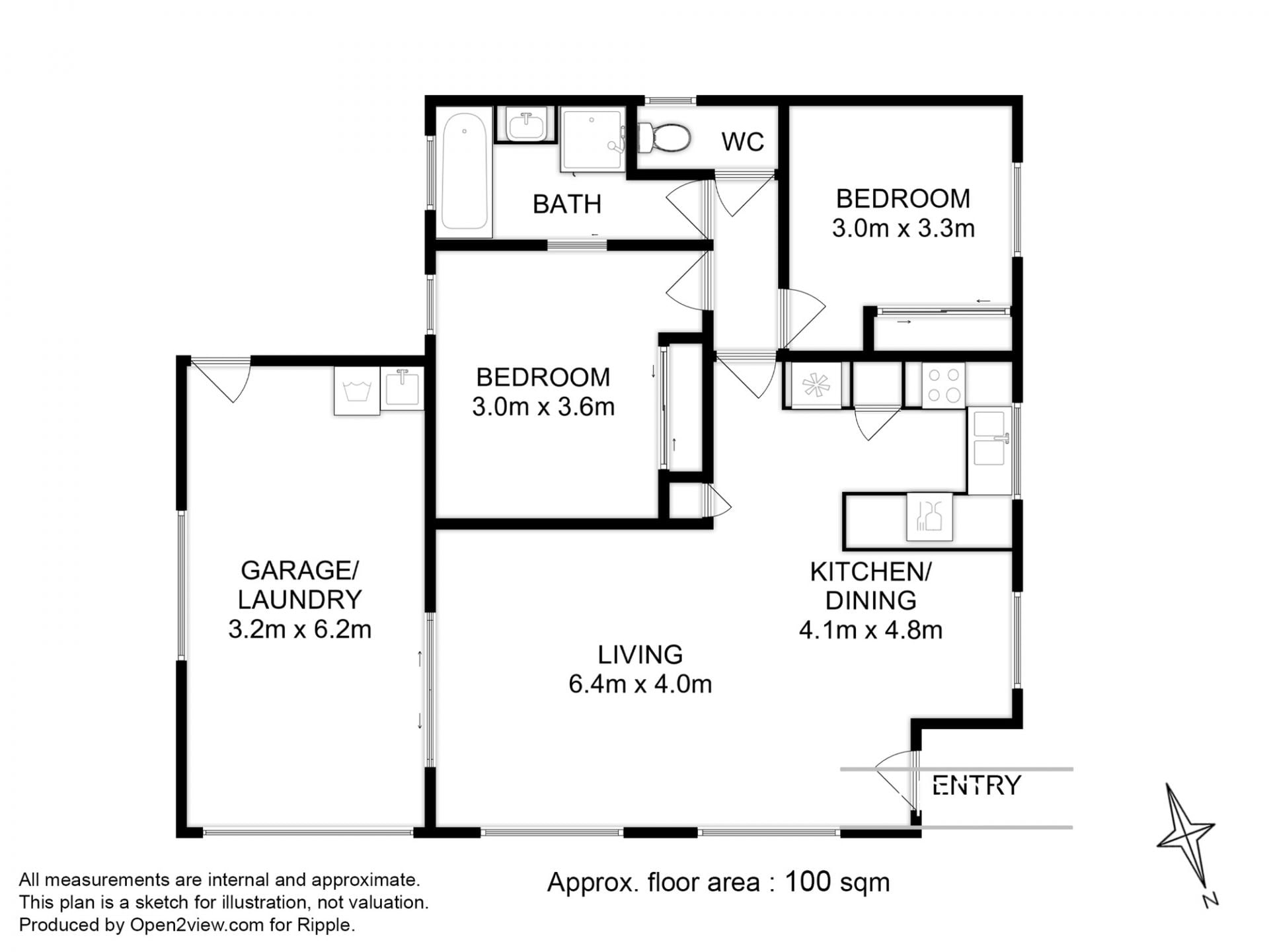 Step directly into the light and spacious open plan living area, which includes room for dining and a modern kitchen with ample storage and quality appliances.