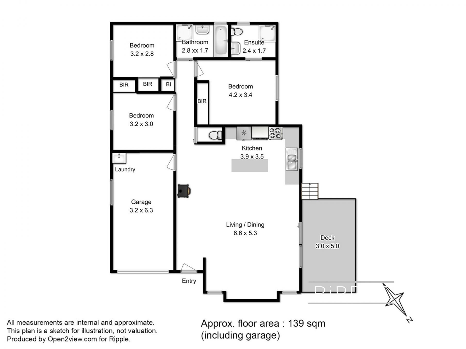 The master suite has built in robes and an ensuite bathroom with oversized shower. Two further double bedrooms with built in robes are serviced by the central bathroom with bathtub and shower.