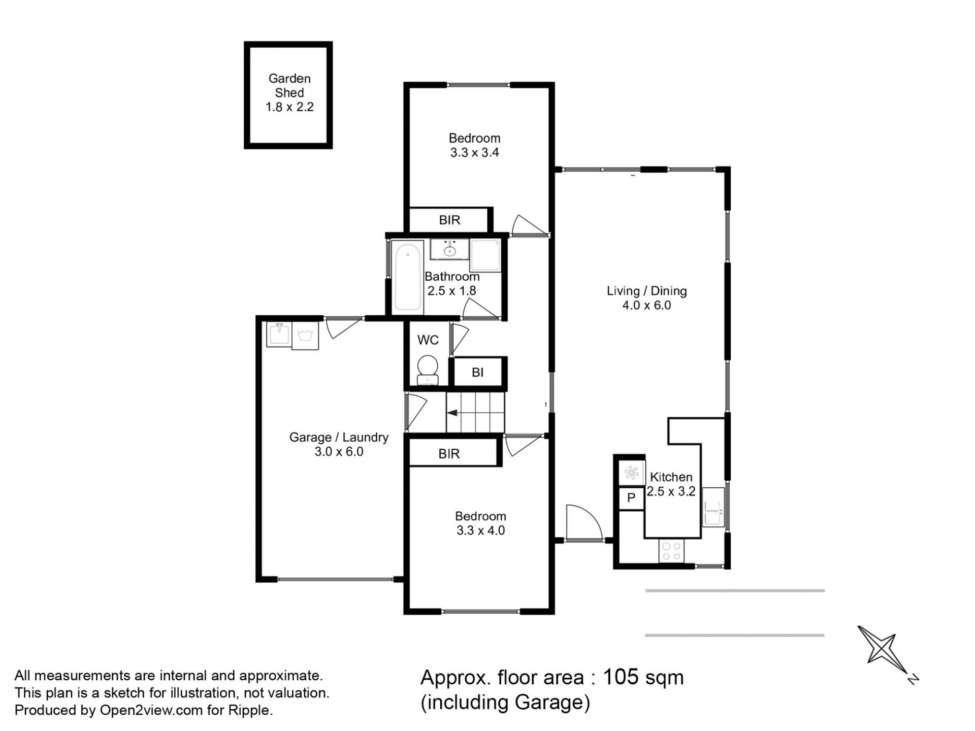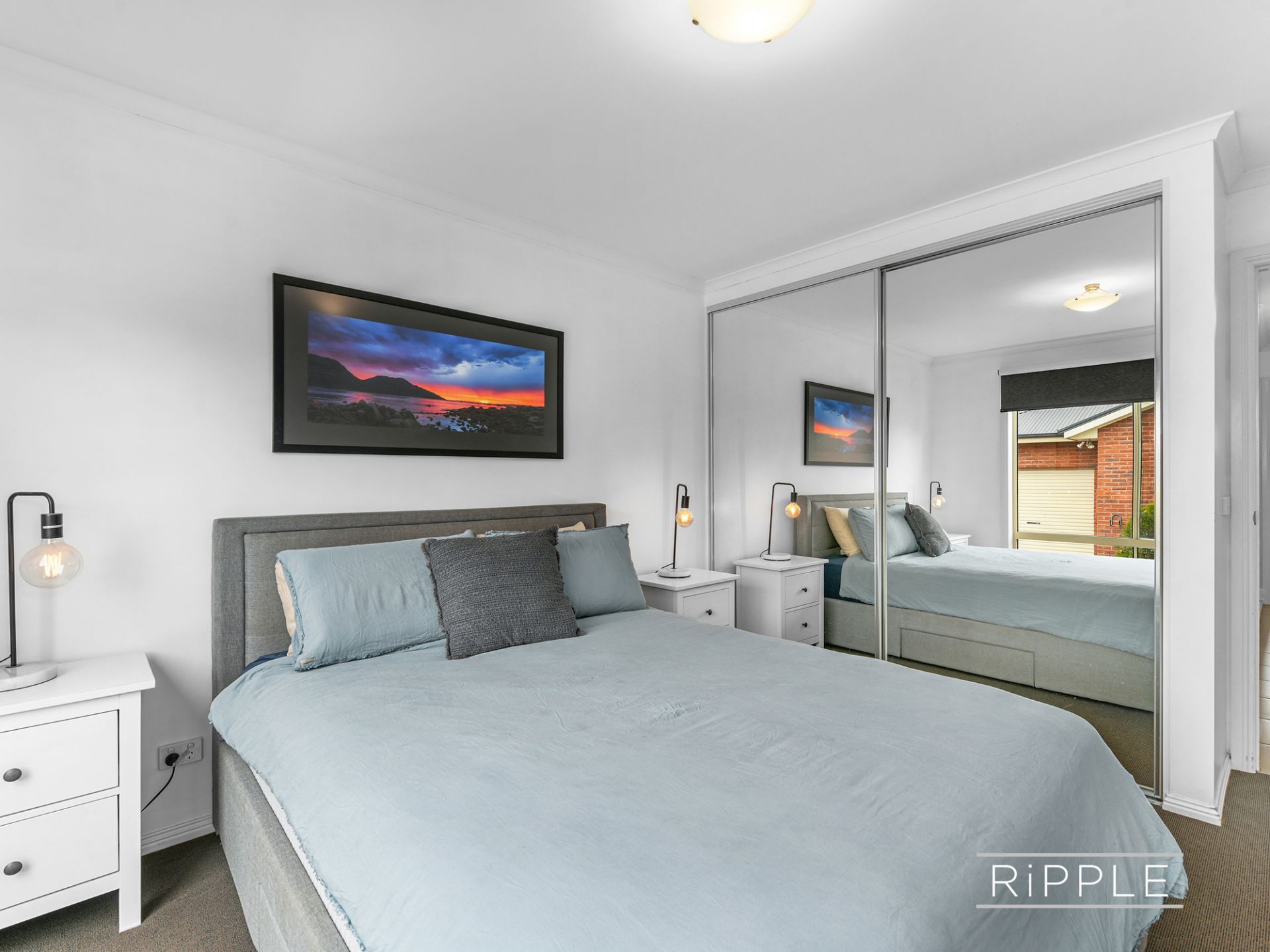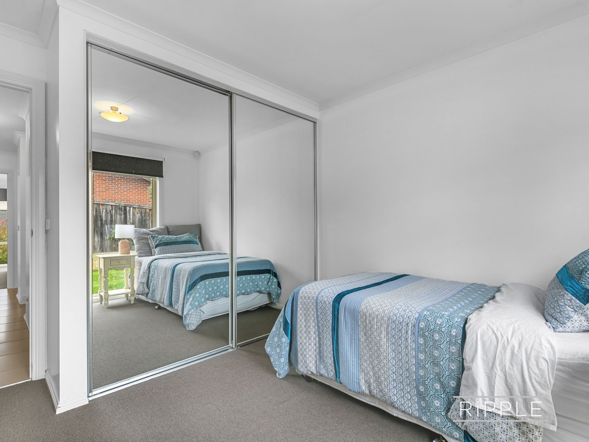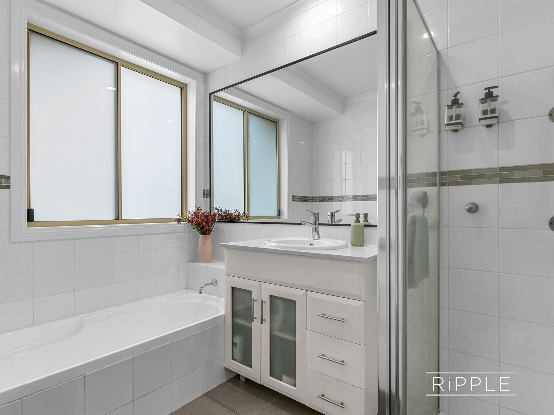 Both sizeable double bedrooms have generous built-in wardrobes, and the neat bathroom contains a vanity, separate bath and shower, with the toilet adjacent.