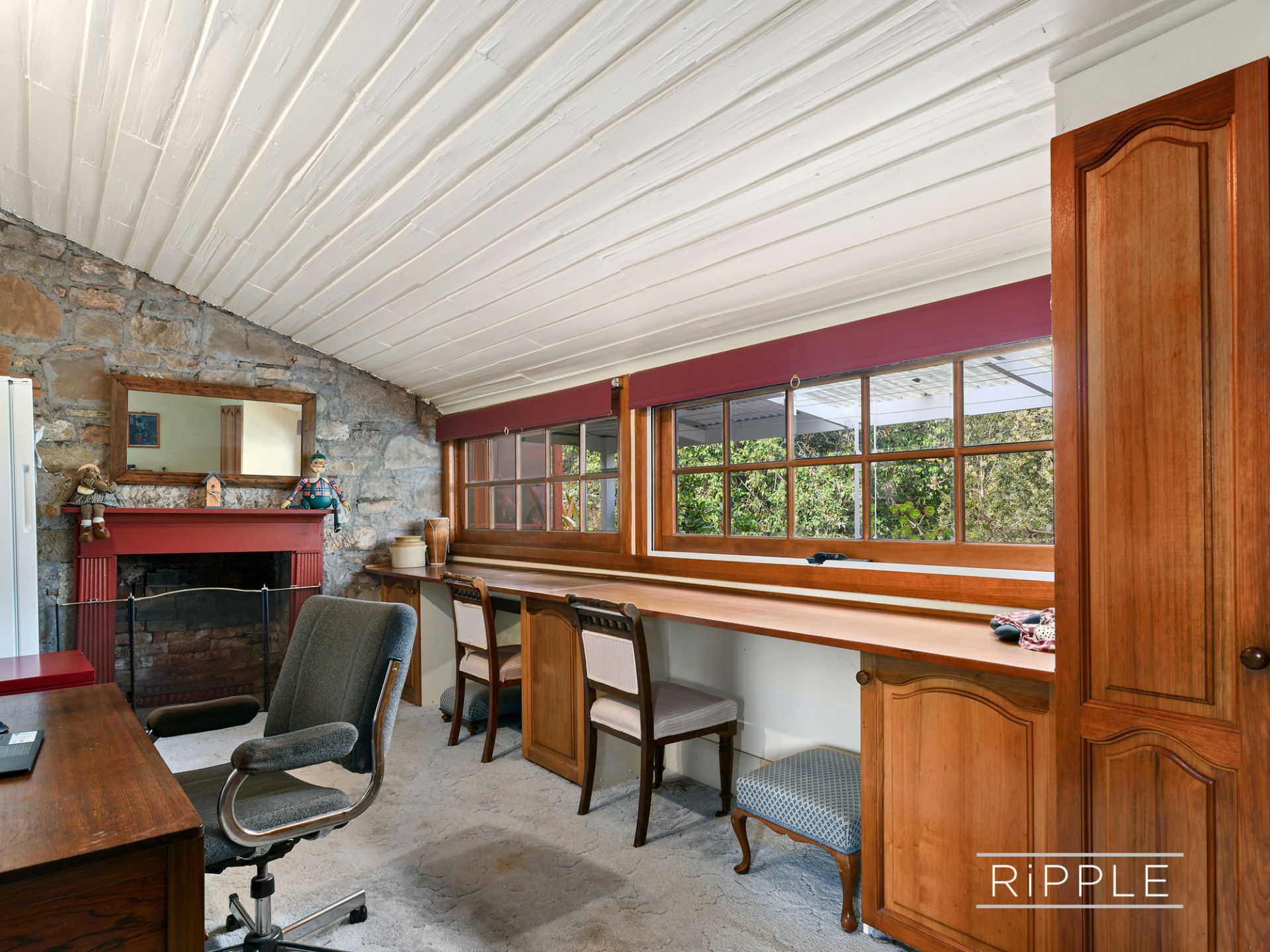 Based on old newspaper clippings found onsite and early council records, construction is estimated between 1870 and 1900. The property was extensively renovated 30 years ago, transforming it into a well-equipped and comfortable residence, with care to preserve its rich heritage. Many period features remain, including open fireplaces, timber fretwork and panelling, plus kitchen cabinetry and built-in bookshelves crafted from the original rough-sawn floorboards.