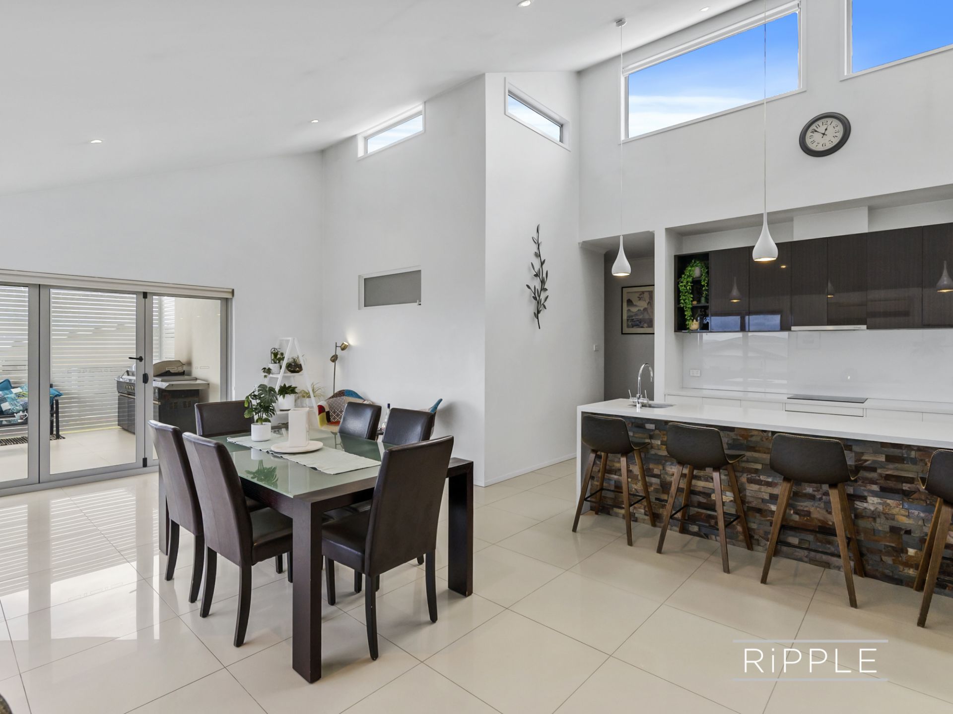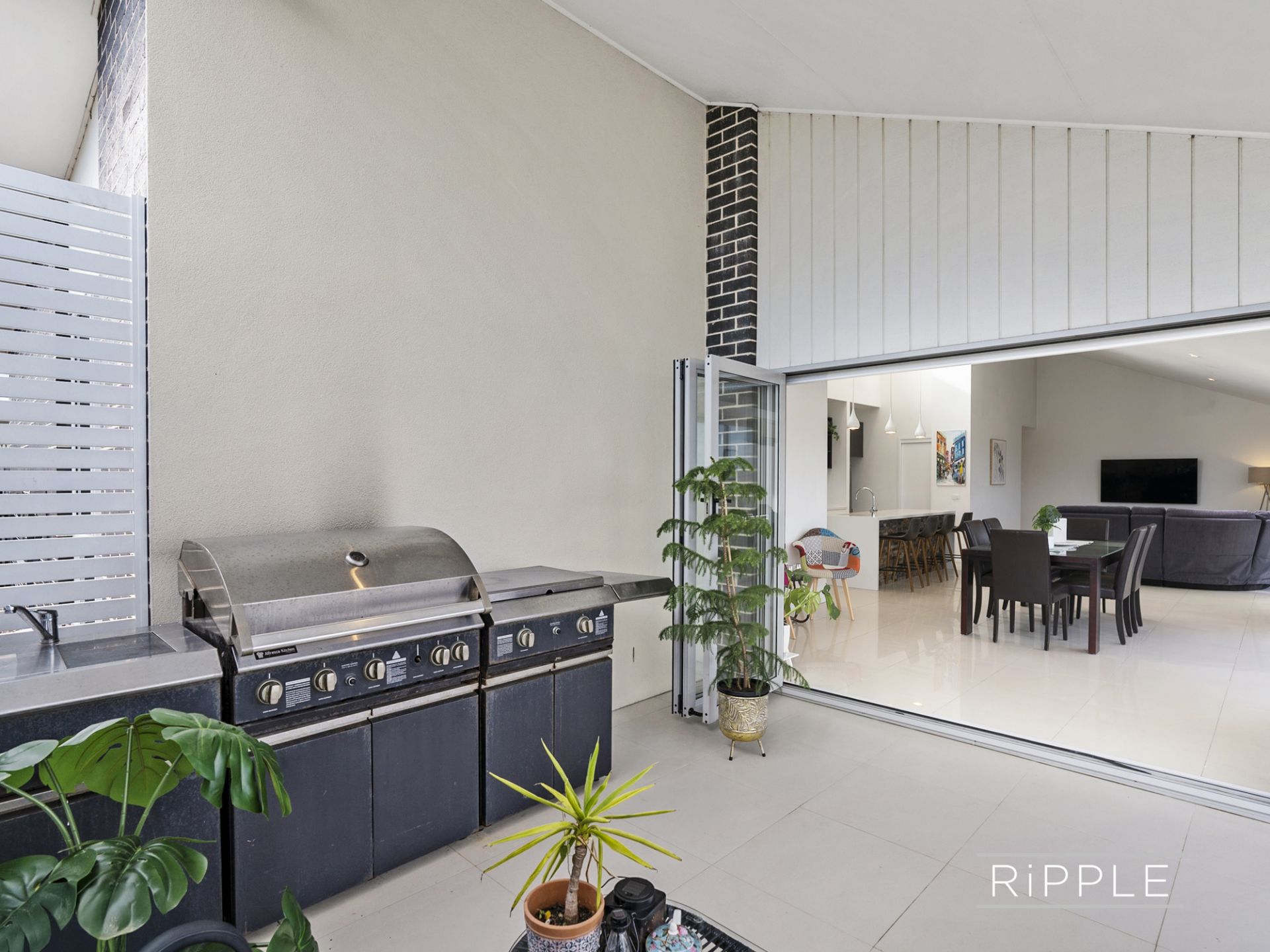 Bi-fold doors open onto a covered entertaining area - seamlessly connecting indoors and out - which is perfect for sheltered alfresco dining and relaxed gatherings with friends in any weather.