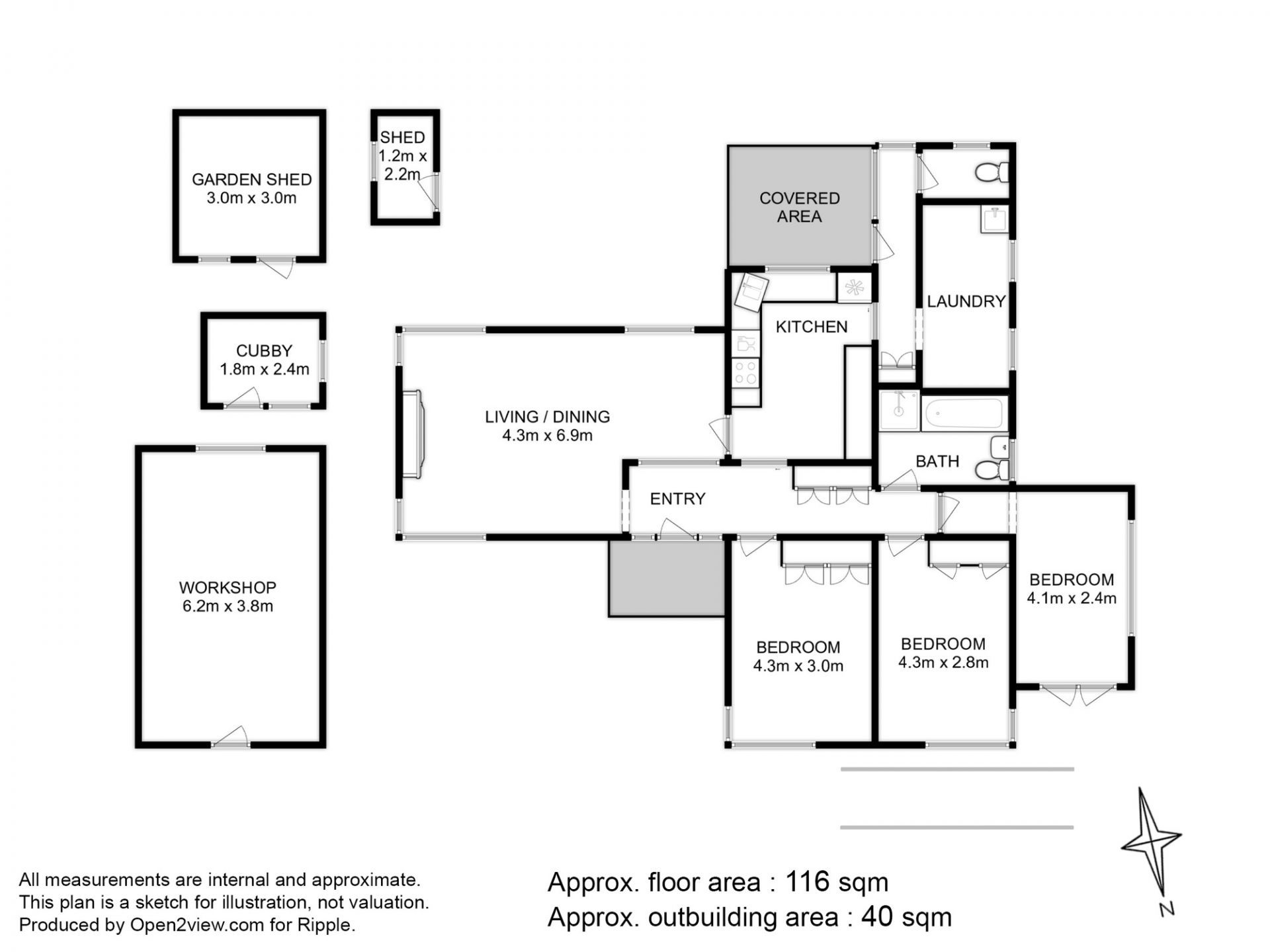 There is off-street parking for two cars, as well as numerous outbuildings that include a large workshop, garden shed, and cubby house.