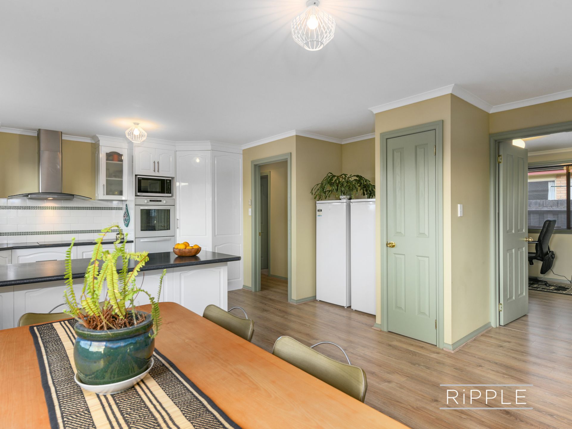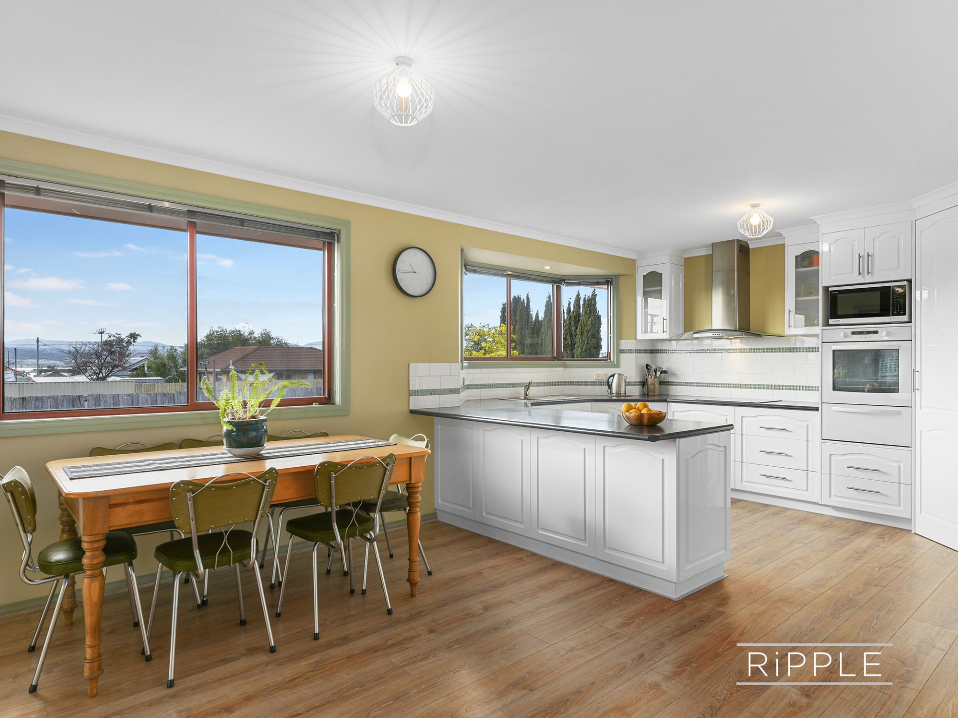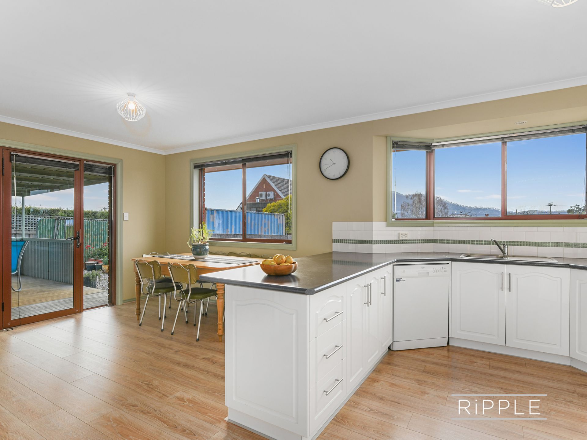 The spacious kitchen and dining area is ideal for informal everyday living. There's heaps of storage, a corner pantry, electric heating, and views towards Mt Direction that will make washing up more appealing!