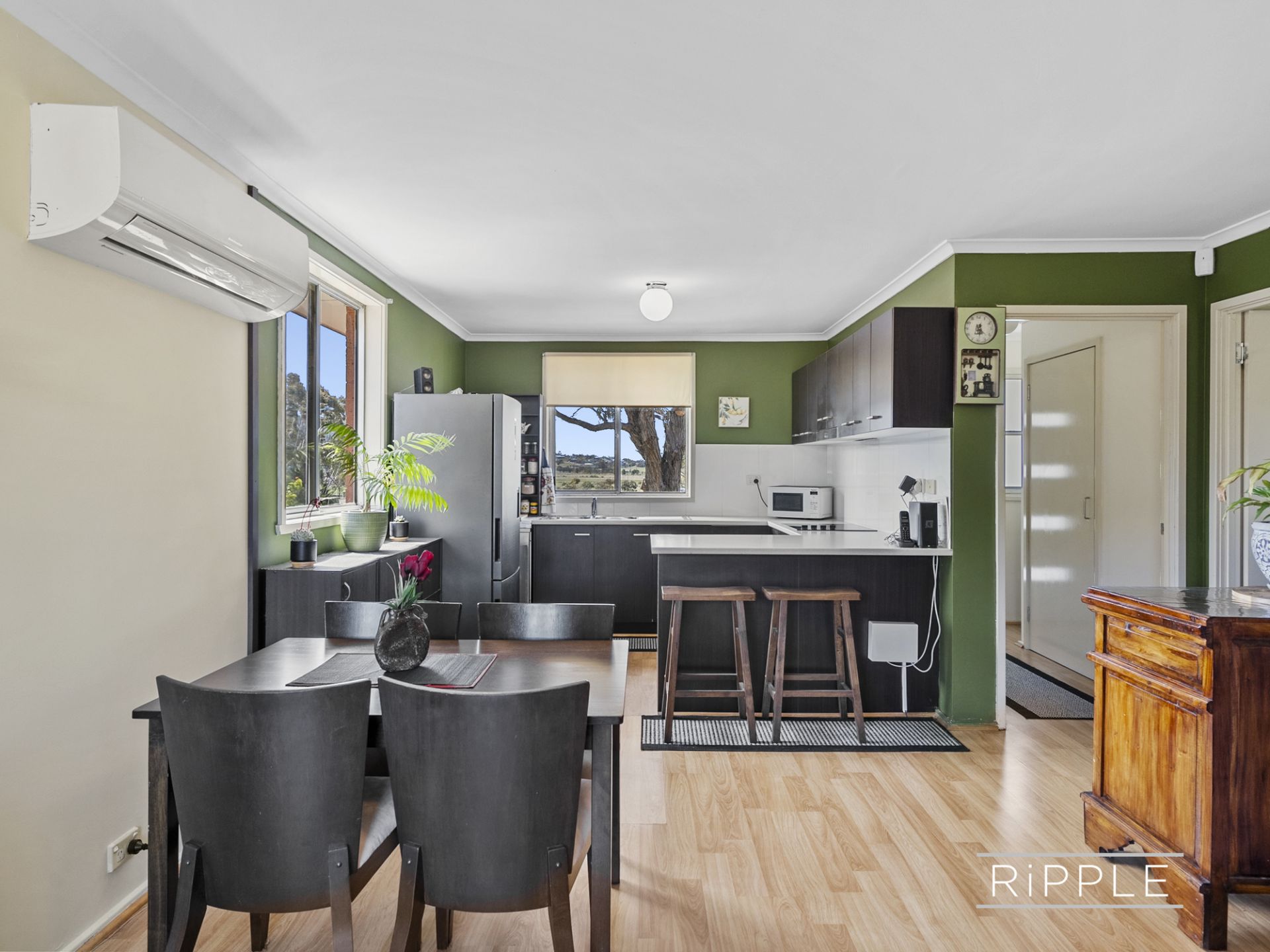 Discover a home where comfort, style and outdoor beauty blend seamlessly at 11 Annabelle Street, Rokeby. This charming three-bedroom, one-bathroom residence offers double-glazed windows in all bedrooms for peaceful living, while the kitchen boasts quality appliances, including a Bosch dishwasher, and flows effortlessly into the combined dining and lounge area, complete with a reverse cycle air-conditioner for year-round comfort.