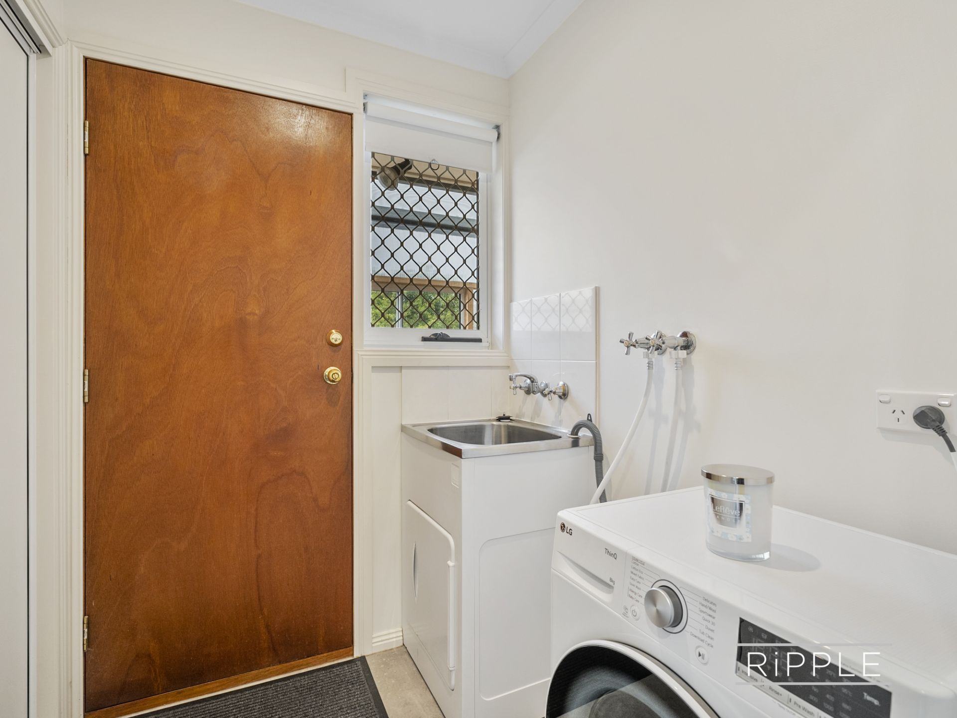 Both double bedrooms have generously sized built-in wardrobes; the bathroom contains a separate bath and shower, a vanity and adjacent toilet; and there are laundry facilities with rear access into the home.