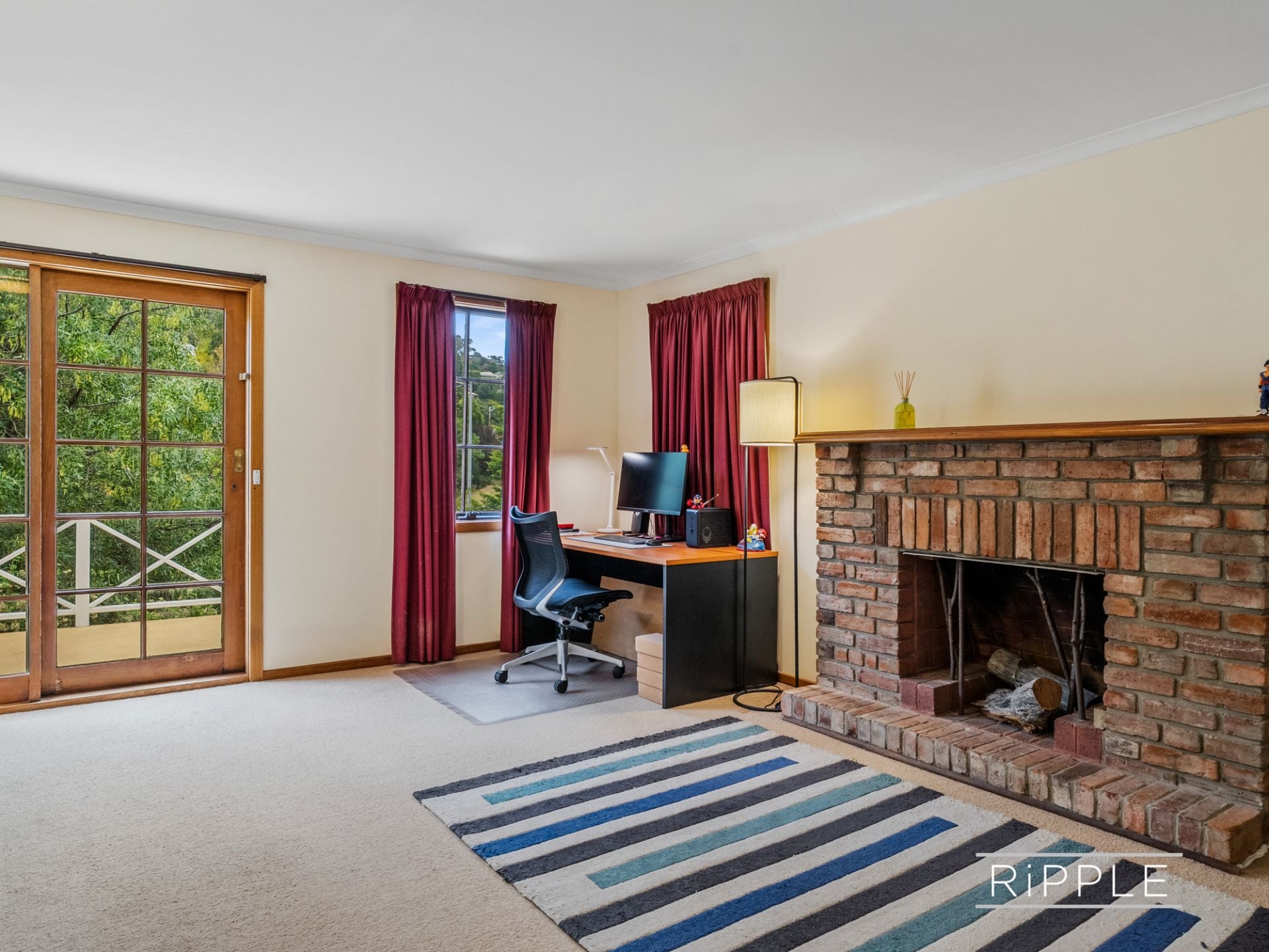A spacious living room provides a warm and inviting atmosphere, featuring a wood fire (currently not in use) and opening out to the front deck - a lovely spot to unwind or entertain.