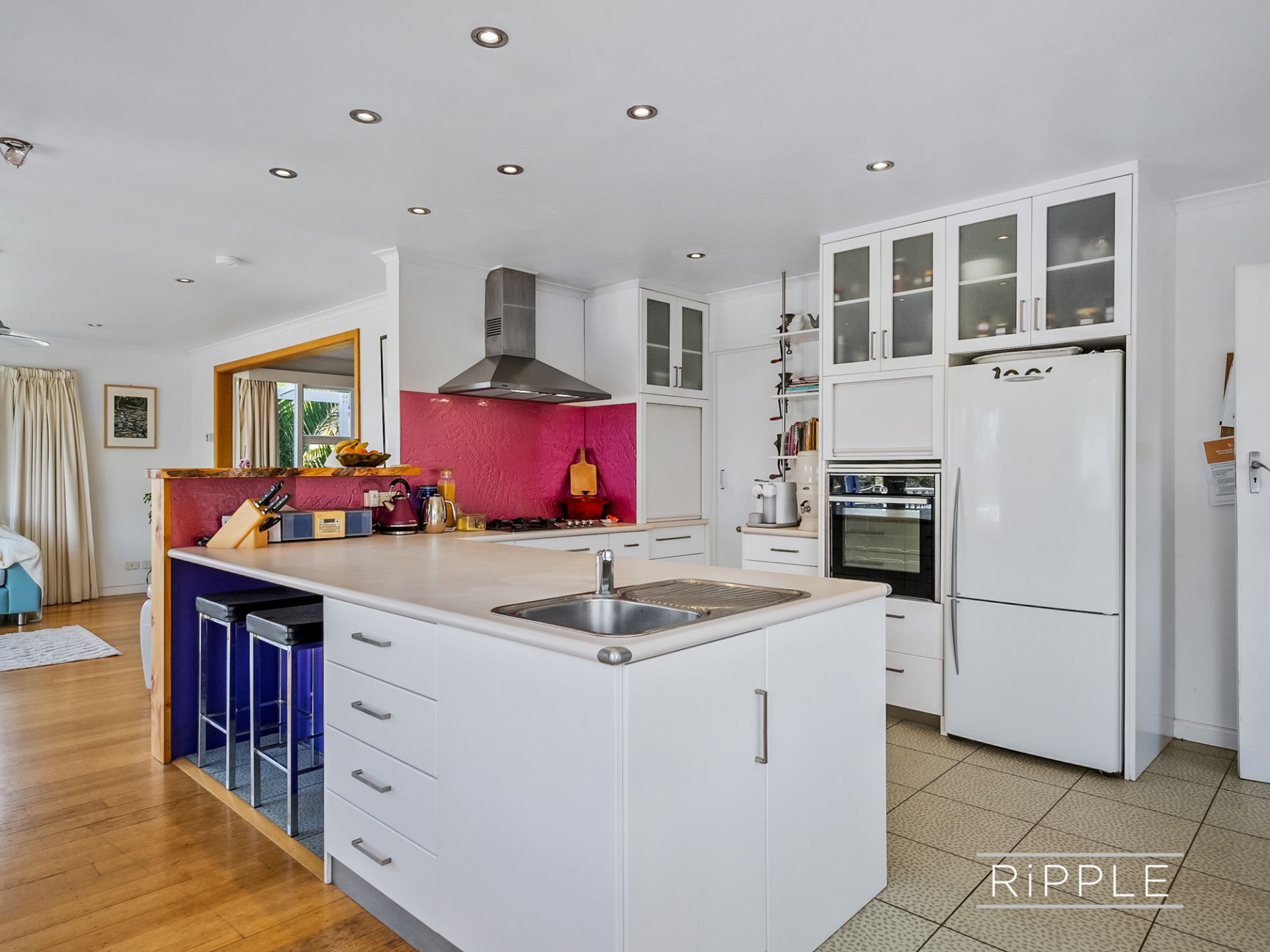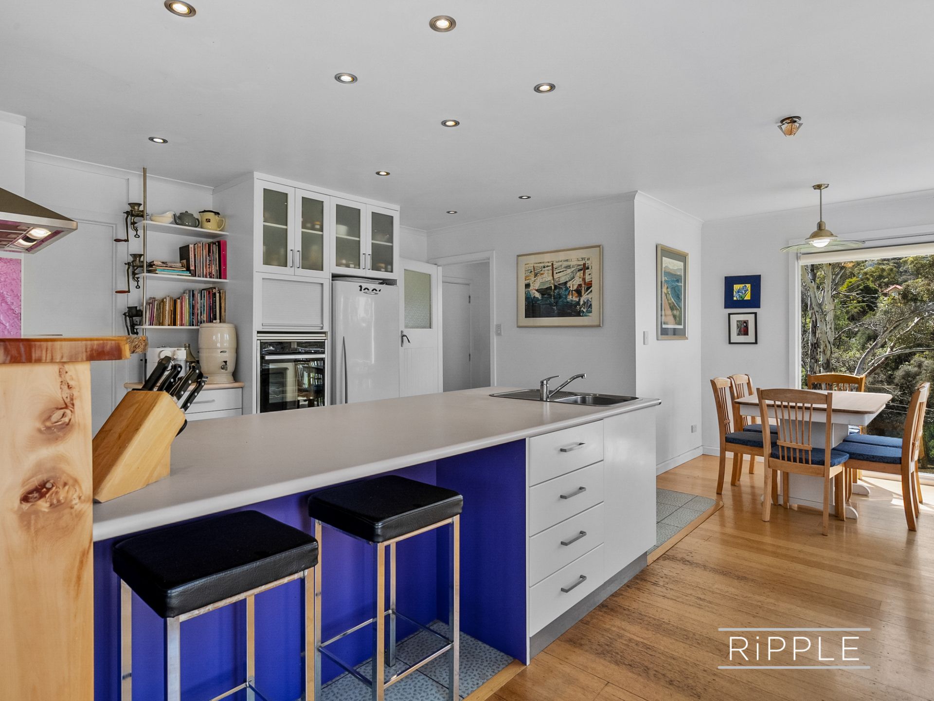 Floorboards enhance the relaxed sitting and dining area, while the upgraded kitchen is thoughtfully designed with a gas cooktop, appliance nook, generous pantry, and abundant bench and storage space. Double glass doors extend the living outdoors to a wide timber deck - the perfect setting for entertaining, summer dining, or simply soaking in the ever-changing river views from your own private vantage point.